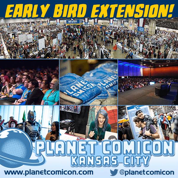 Early bird pricing EXTENDED for Planet Comicon Kansas City! Purchase NOW for the best price of the year!