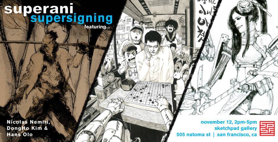 Nicolas Nemiri, Dong Ho Kim, and Hans Olo appear at Sketchpad Gallery on Sunday, November 12th at 2:00 PM to meet fans and sign and sketch in their respective books.
