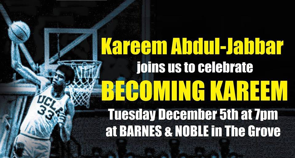 Kareem Abdul-Jabbar appears at Barnes & Noble in the Grove on Tuesday, December 5th at 7:00 PM to celebrate his long awaited memoir Becoming Kareem: Growing Up On and Off the Court.