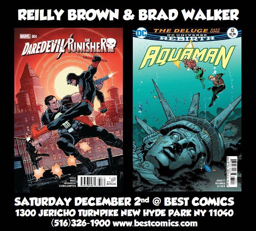 Reilly Brown (Deadpool, Slapstick, Amazing Spider-Man) and Brad Walker (Aquaman, Action Comics, Guardians of the Galaxy) at Best Comics Saturday, December 2nd at 1:00 PM for a comic signing.
