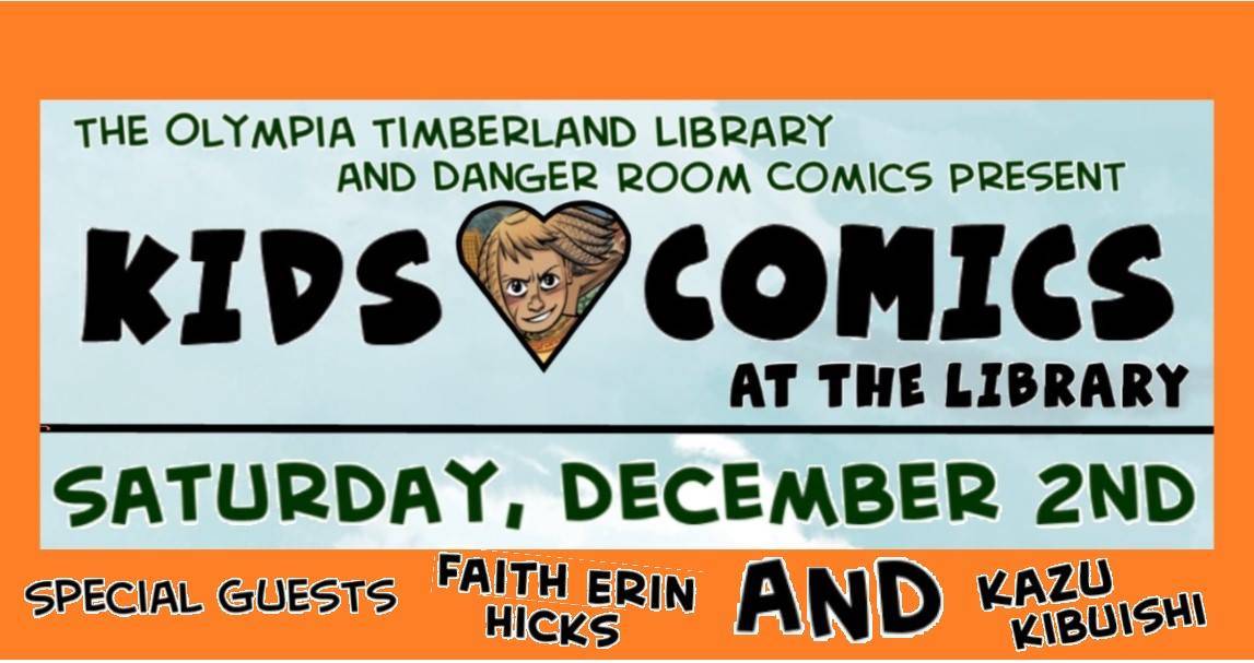 Join the Olympia Timberland Library and Danger Room Comics on Saturday, December 2nd at this special event celebrating comics for kids! Kids, teens, and families will have the opportunity to meet cartoonists Faith Erin Hicks (creator of The Nameless City), and Kazu Kibuishi (creator of Amulet). Hear them talk about their creative process and get books signed. Frank Hussey of Danger Room Comics will present comics in Reader’s Theater format, and an activity for kids and families will be provided in the meeting room. Kids: feel free to come dressed up as your favorite comic book character! Books will be on sale courtesy Danger Room Comics. Sponsored by the Friends of the Olympia Timberland Library.