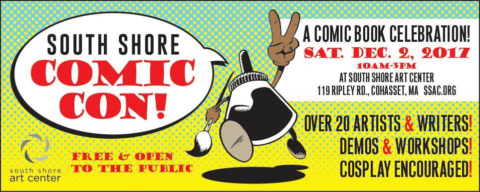 South Shore Art Center presents its second South Shore Comic Con! Featuring over 25 comic artists, signing and selling their zines, original art, and talking about the craft of comic book storytelling. Panels and workshops will be in the art studios throughout the day. Costumes encouraged!