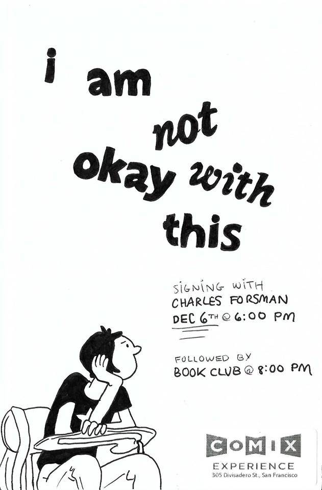 Cartoonist Charles Forsman (THE END OF THE FUCKING WORLD, CELEBRATED SUMMER) appears at Comix Experience on Wednesday, December 6, 2017 at 6:00 PM to sign his newest graphic novel I AM NOT OKAY WITH THIS from Fantagraphics!