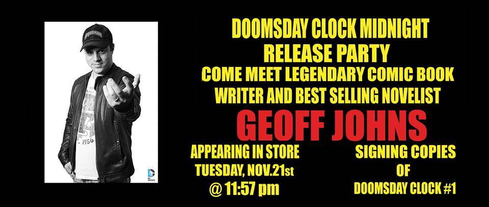 GEOFF JOHNSÂ appears for a signing at Gotham Central Comics on Tuesday, November 21st at 11:57 PM for the Doomsday Clock MIDNIGHT RELEASE PARTY!