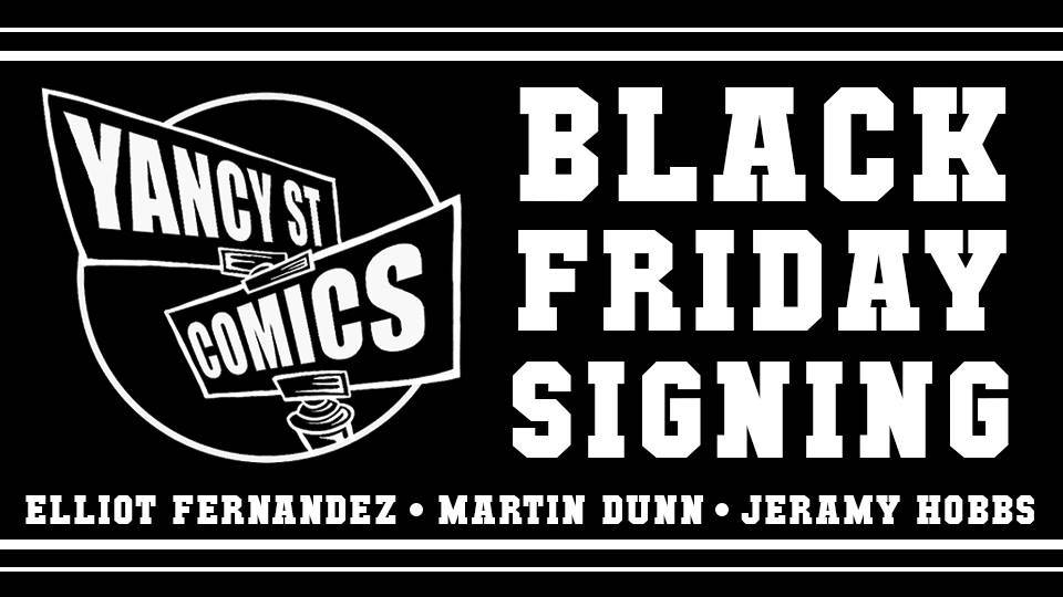 Elliot Fernandez, Martin Dunn, and Jeramy Hobbs appear at Yancy Street Comics on Friday November 24th from 12PM to 3PM.