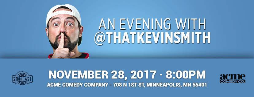 Kevin Smith appears for four shows at the Acme Comedy Company on Tuesday, November 28th at 8:00 PM and 10:30 PM and on Wednesday, November 29th at 8:00 PM and at 10:30 PM.