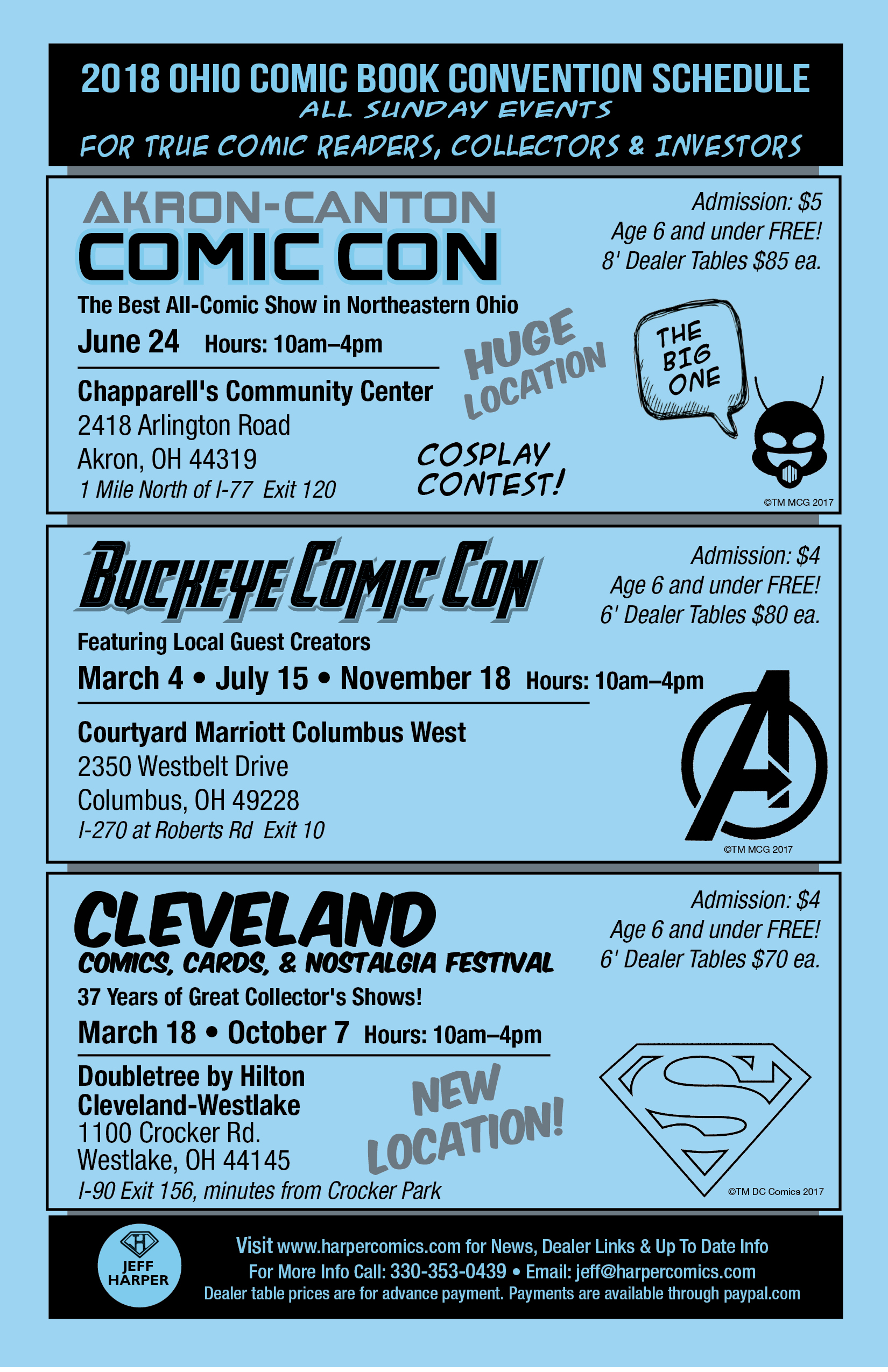 For 37 Years, Ohio’s longest running Comic Book Convention. For True Comic Book Collectors, Readers and Investors. 10 am to 4 pm. Hourly Prizes. Free Parking. Admission only $4.00, Age 6 & under FREE. |