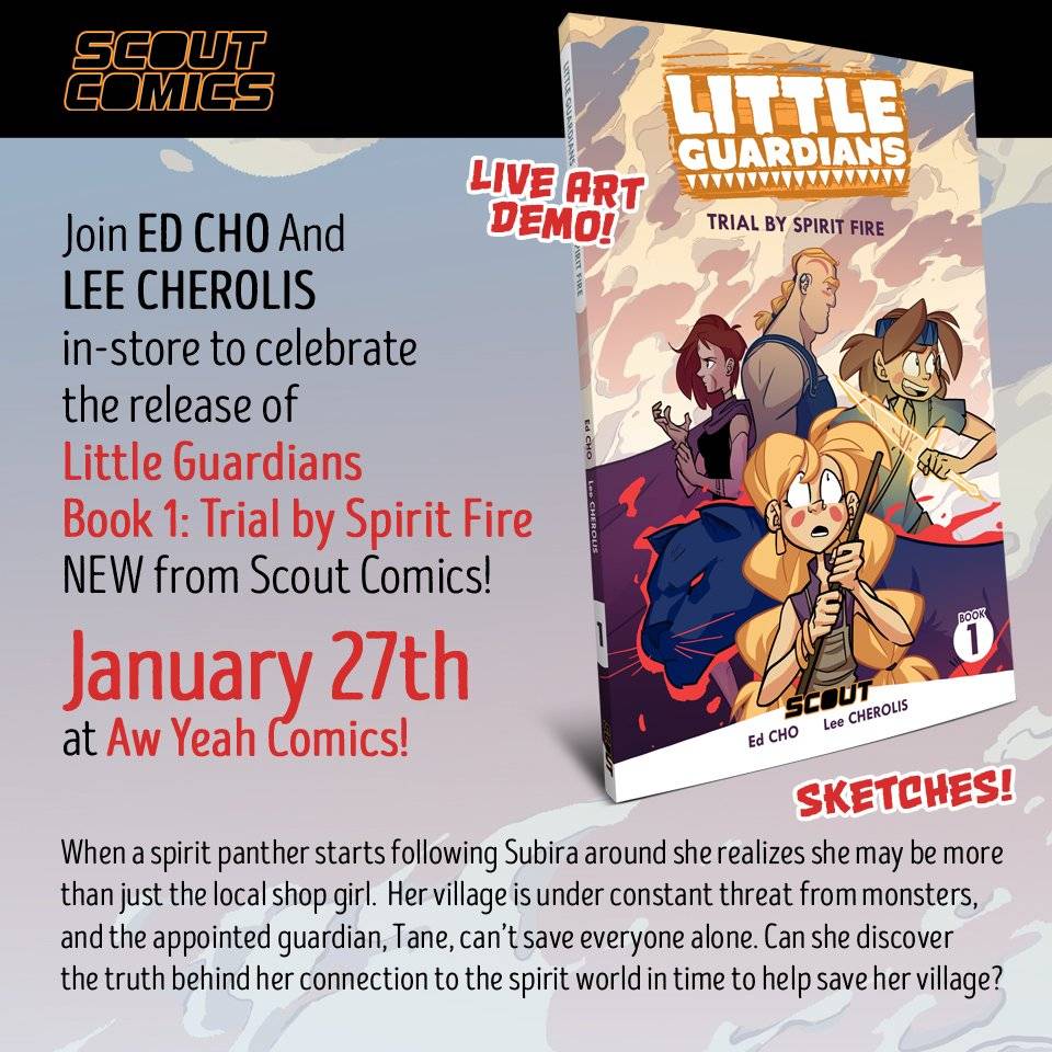 Ed Cho and Lee Cherolis, the creators of the Little Guardians ongoing fantasy comic series from Scout Comics, will be signing at Aw Yeah Comics on Saturday, January 27, 2018 from noon till 5:00 PM.