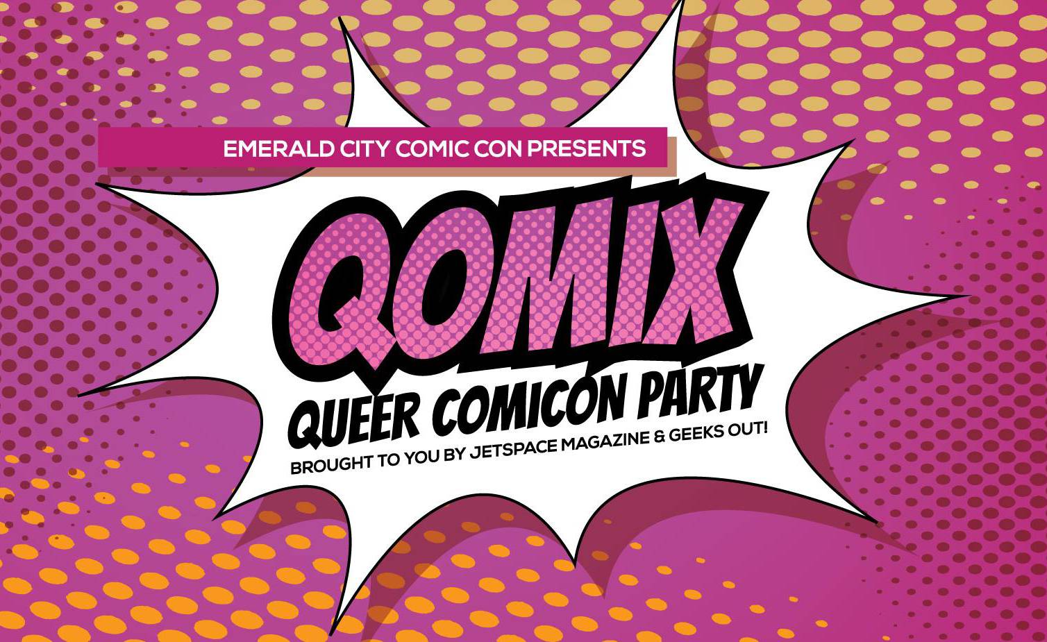 Dust off your best Super Suit and fly on over to our Fortress of Fabulous for QOMIX: Queer Comicon Party, presented by Emerald City Comic Con and brought to you by epic event organizers Jetspace Magazine (Pink Party Prime) and Geeks OUT (FLAME CON). Join your fellow queer geeks, along with your host, legendary cosplayer Abie Ekenezar/Babs Cosplay, and hard-hitting DJs Nome Goldie (Darqness Seattle) and Howin 1000 (Darqness Seattle) for drinks, dancing, and the amazing QOMIX Cosplay Contest, where you could win some fabulous prizes. There’s no better way to kick off your ECCC weekend!