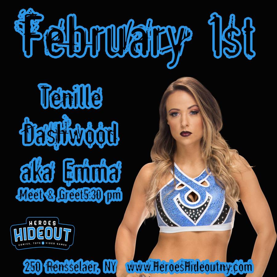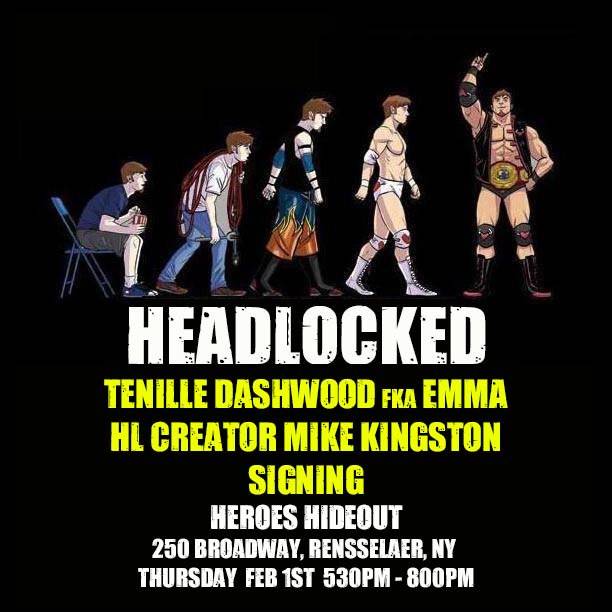 Former WWE Superstar Emma (aka Tenille Dashwood) will be at Heroes Hideout on Thursday February 1st at 5:30 PM. Also signing will be Mike Kingston, co-creator of the comic HEADLOCKED. Tickets available at the link…