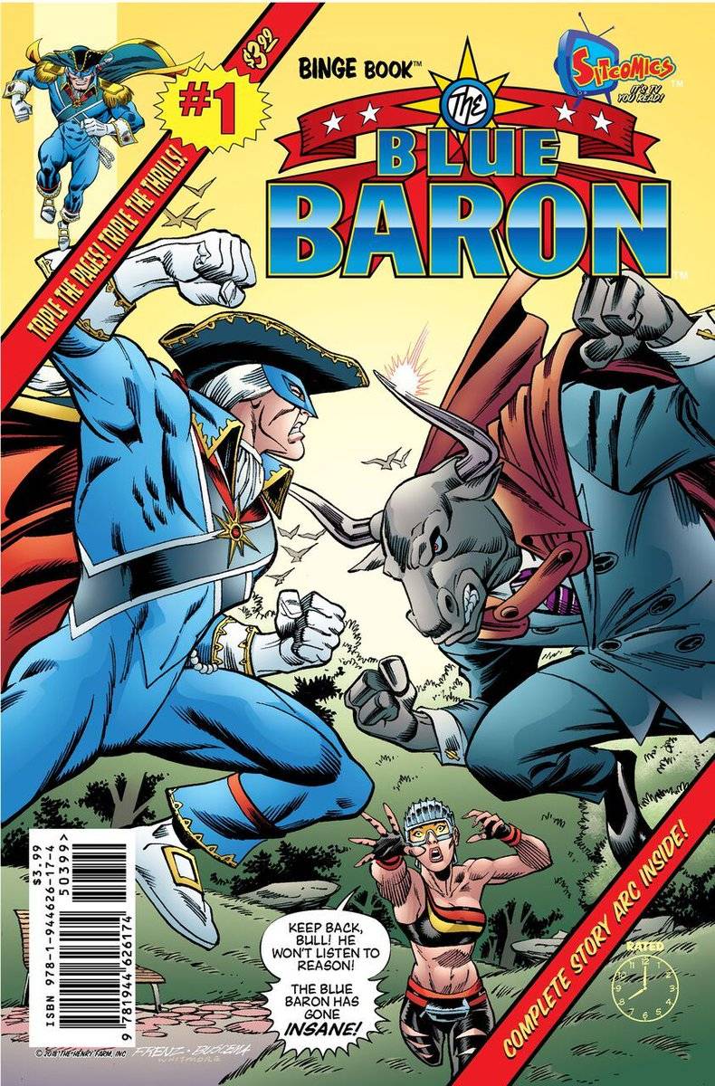 Since 1776, The Blue Baron has defeated alien invaders, super-powered psychopaths and megalomaniacal mutants – but will he be able to conquer eighth grade?! Sitcomics™ proudly presents an action comedy about what happens when a 250 year old hero permanently switches bodies with a 13 year old zero!