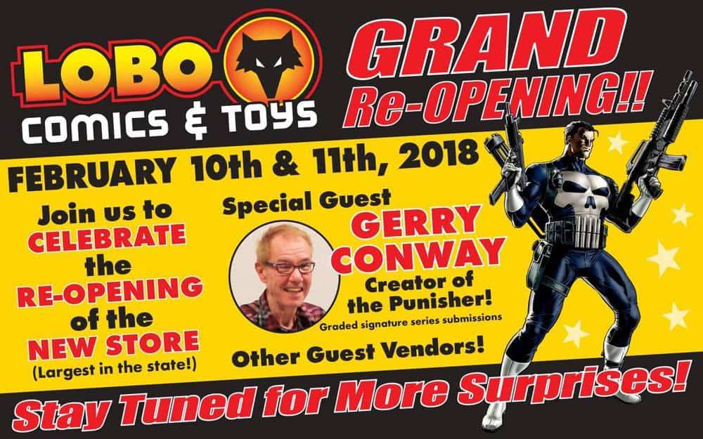 Writer Gerry Conway, co-creator of the Punisher, appears at Lobo Comics for their grand re-opening this weekend on February 10th & 11th!