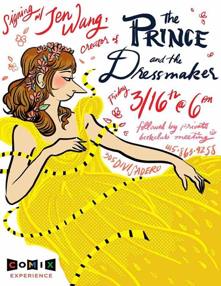 Cartoonist Jen Wang (IN REAL LIFE, KOKO BE GOOD) appears at Comix Experience on Friday, March 16th to sign her delightful new graphic novel THE PRINCE AND THE DRESSMAKER (First Second Books)! The open-to-the-public signing will take place from 6:00 – 7:30 PM and will be followed by our Graphic Novel of Month Club meeting at 8pm, which is only open to club members. We can’t wait to talk to Jen all about her charming and inclusive new comic, and if you’d like to join in the conversation, head on over to graphicnovelclub.com/start to become a Graphic Novel Club member!