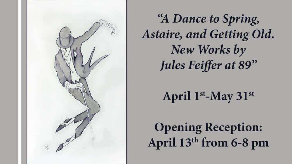 Legendary cartoonist Jules Feiffer appears at the R. Michelson Galleries for the opening reception of his art exhibition on Friday, April 13th from 6:00 – 8:00 PM. Further details here…