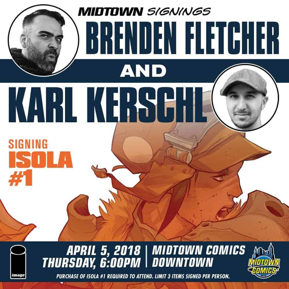 Writer Brenden Fletcher and artist Karl Kerschl join us from Midtown Comics Downtown on Thursday, April 5th at 6:00 PM to celebrate the launch of their brand new Image Comics series Isola #1! This is an open signing and we recommend showing up early, just to be safe. Purchase of Isola #1 is mandatory, you may get up to 3 items signed.