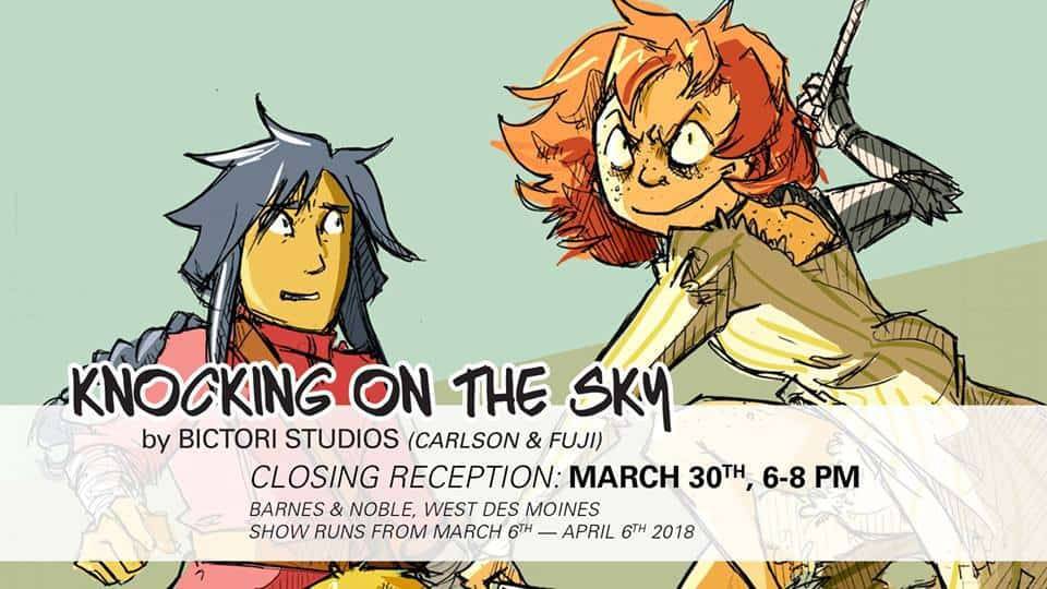 Taylor Carlson appears at Barnes & Noble on Friday, March 30, 2018 from 6:00 – 8:00 PM for the closing reception of an art exhibition of work from his comic Knocking on the Sky.