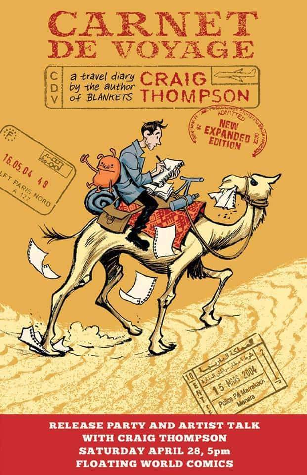 Craig Thompson appears at Floating World Comics on Saturday, April 28th at 5:00 PM to celebrate the release of a new expanded edition of Carnet de Voyage, a unique insight into an acclaimed cartoonist’s travels through Europe and Morocco.