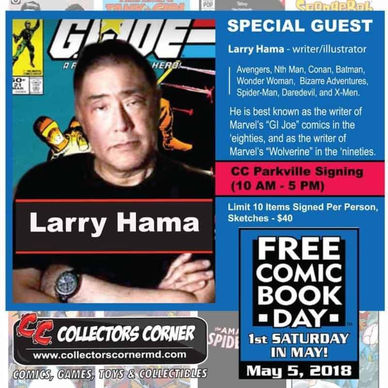 Larry Hama appears at Collectors Corner to celebrate Free Comic Book Day on Saturday, May 5, 2018!