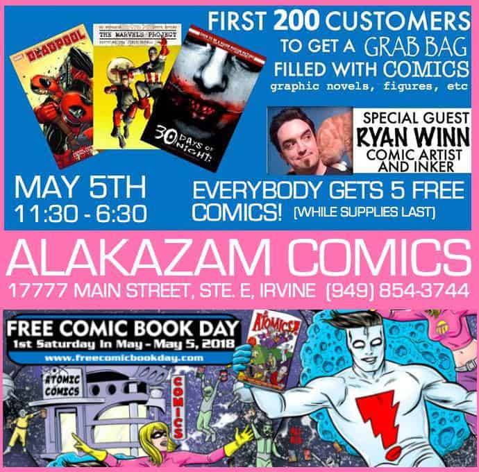 Artist Ryan Winn (Death Betty) appears at Alakazam Comics to celebrates Free Comic Book Day on Saturday, May 5, 2018!