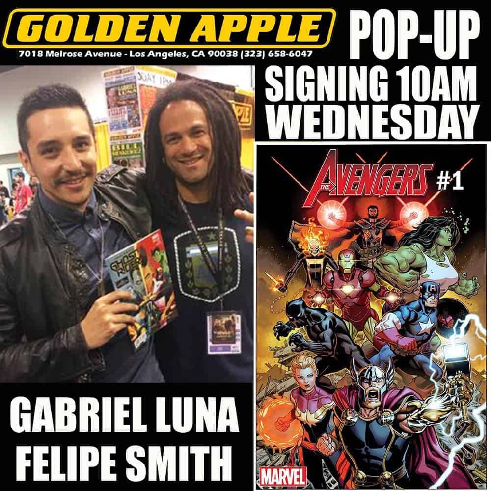 Actor Gabriel Luna and writer Felipe Smith sign at Golden Apple Comics on Wednesday, May 2nd at 10:00 AM.