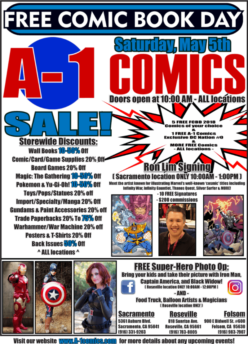 Artist Ron Lim (Silver Surfer, Infinity Gauntlet, Sonic the Hedgehog) signs at A-1 Comics to celebrate Free Comic Book Day on Saturday, May 5, 2018 from 10:00 AM till 1:00 PM.