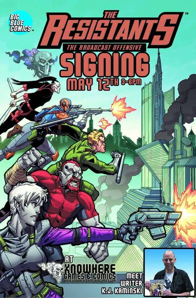 KJ Kaminski of Big Blue Comics signs at Knowhere Games and Comics on Saturday, May 12th at 3:00 PM.