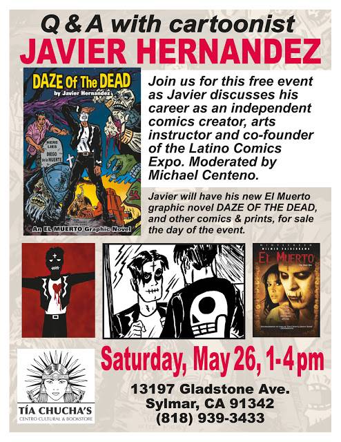 Javier Hernandez is a cartoonist and arts instructor. He started publishing comics through his imprint Los Comex in 1998. Among his most known work is EL MUERTO, which was turned into a live-action film starring Wilmer Valderrama in 2007, for which Javier served as Associate Producer. Javier’s work has appeared in books such as ‘Latinx Comic Book Storytelling’ and ‘Graphic Borders: Latino Comics Past, Present & Future’. Since 2003 he’s been teaching cartooning and comic book workshops throughout Southern California. In 2011 he co-founded the Latino Comics Expo, the nation’s premiere convention dedicated to showcasing the work of Latino comic creators.