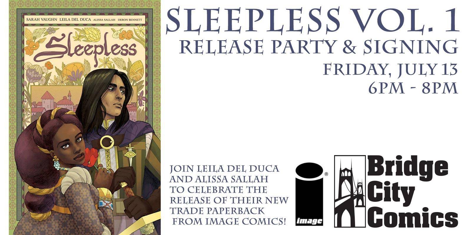Leila del Duca and Alissa Sallah appears at Bridge City Comics on Friday, July 13th at 6 PM to sign SLEEPLESS VOL. 1 from Image Comics!