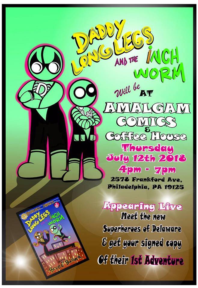 Bryce W. Bullock appears at Amalgam Comics on Thursday, July 12th at 4:00 PM to sign Daddy Long Legs and the Inch Worm!