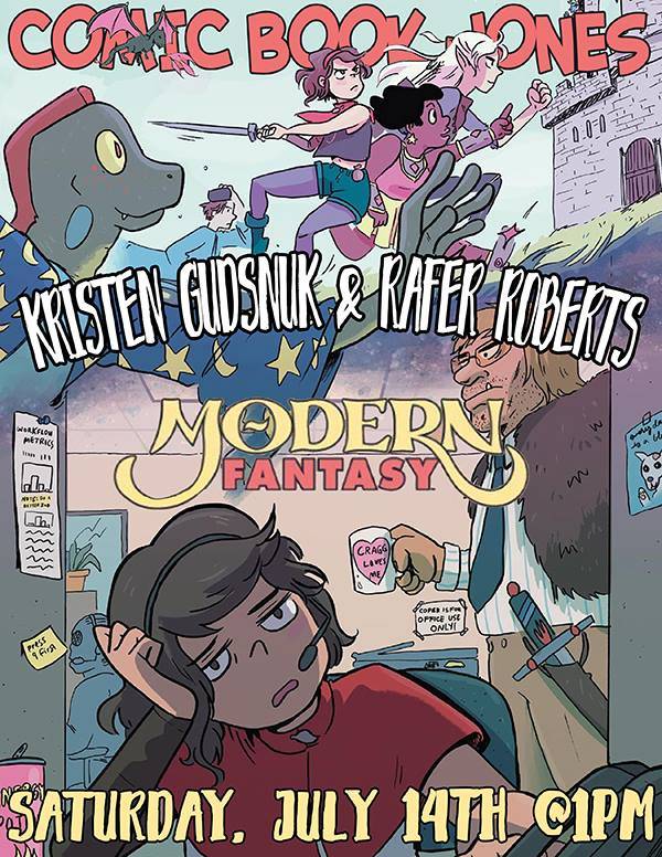 Artist Kristen Gudsnuk and writer Rafer Roberts appear at Comic Book Jones on Saturday July 14, 2018 to sign MODERN FANTASY #1 from Dark Horse Comics! And it’s Kristen’s birthday to boot!