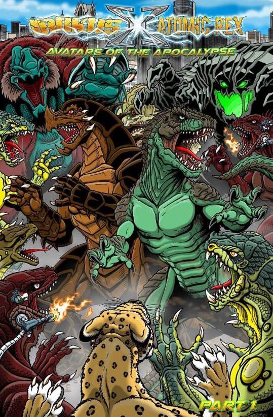 “Atomic Rex from Matthew Dennion’s best selling novel series and Irokus from Frank Parr and Wayne Smith’s Kaijuverse series meet in 100+ page crossover! Both Irokus and Atomic Rex will face numerous other monsters as they march toward a confrontation with each other to determine who is the mightiest monster on two worlds!”