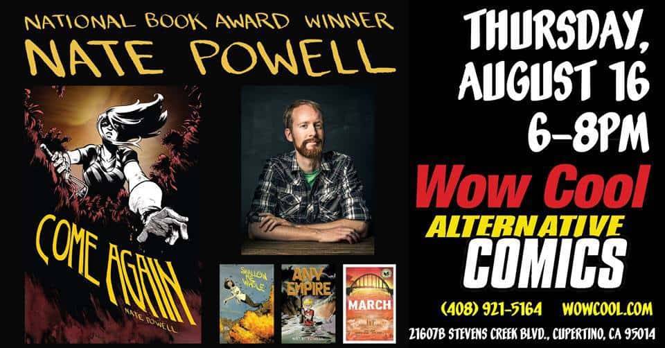 Nate Powell, the creator of SOUND OF YOUR NAME, ANY EMPIRE, SWALLOW ME WHOLE and the illustrator of the critically acclaimed and award winning MARCH trilogy, appears at Wow Cool on Thursday, August 16th at 6:00 PM to celebrate the release of his latest graphic novel COME AGAIN.
