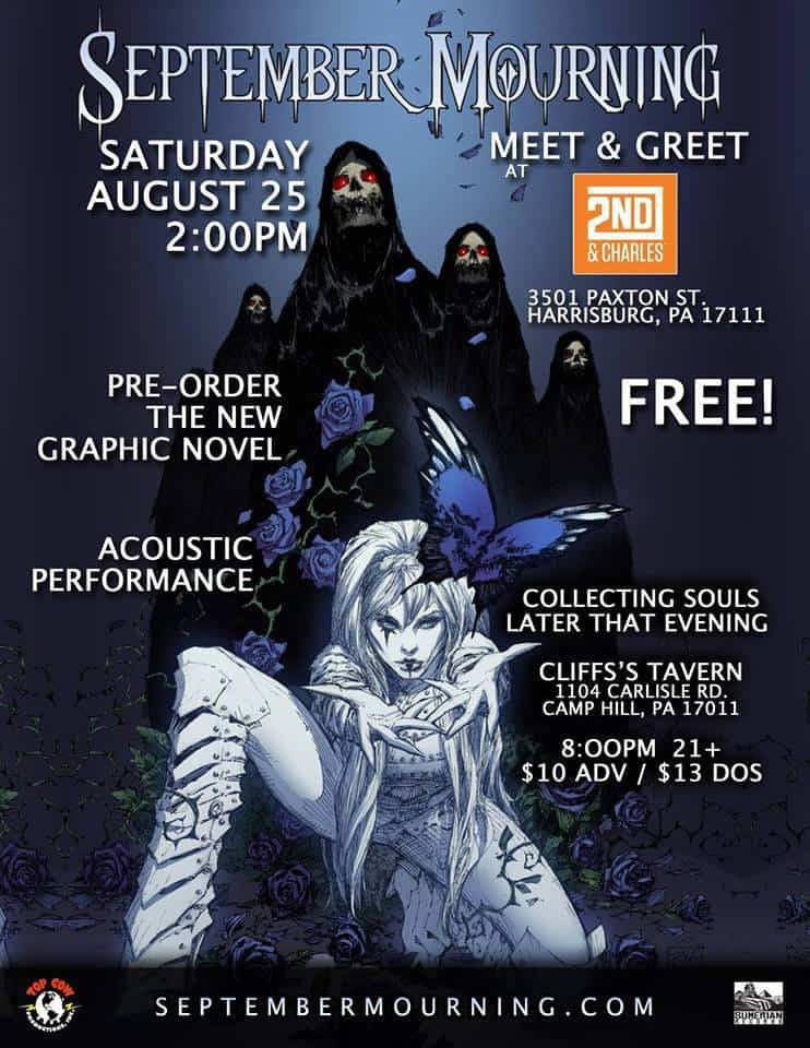 September Mourning and The Reapers appear at 2nd & Charles for a FREE event on Saturday, August 25, 2018 from noon till 3:00 PM.