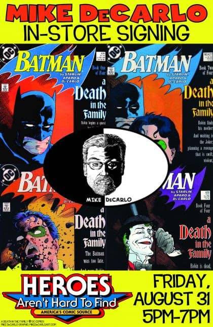 HEROES (with the help of our friends at the Winston-Salem Comic Con) will host a signing with the one-and-only MIKE DeCARLO on the evening of Friday August 31st!