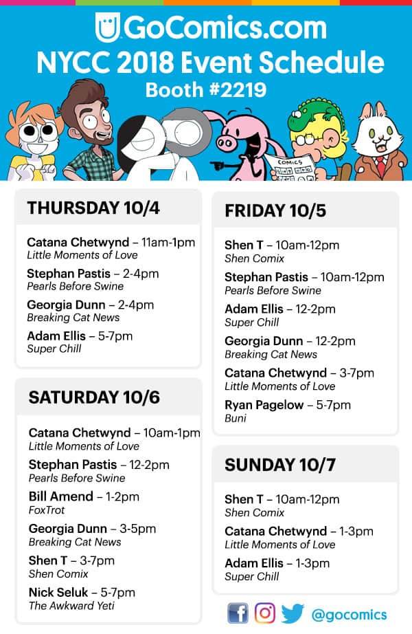 Here’s the scoop on what GoComics and their creators will be doing throughout New York Comic Con at Booth #2219: