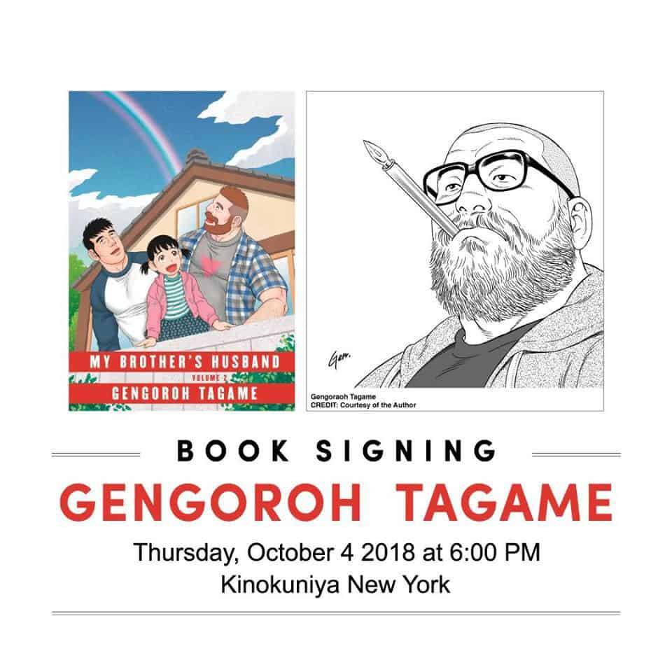 Gengoroh Tagame appears at Kinokuniya to sign My Brother’s Husband Vol.2 on Thursday, October 4, 2018 at 6 PM!