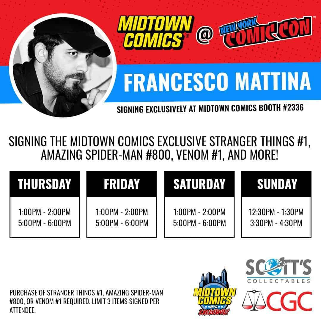 - Francesco Mattina: Signing the Midtown Comics Exclusive Stranger Things #1, Amazing Spider-Man #800, Venom #1, and more!