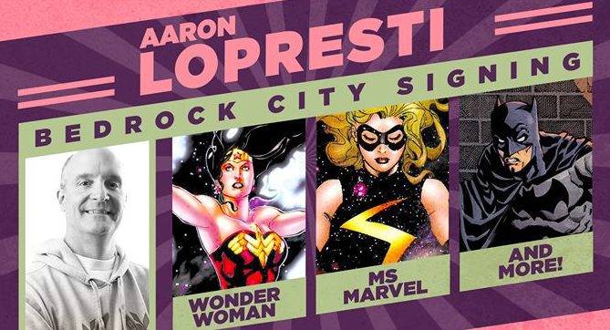 Artist Aaron Lopresti appears at Bedrock City Comic Co. on Saturday, November 3, 2018 from noon till 6 PM for a signing.