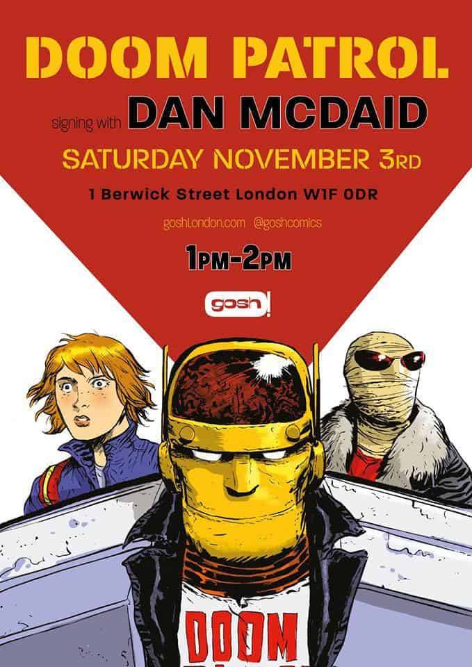 Dan McDaid appears on Saturday November the 3rd from 1:00 – 2:00 PM at Gosh Comics for a signing of Doom Patrol #12: Into the Daemonscape!