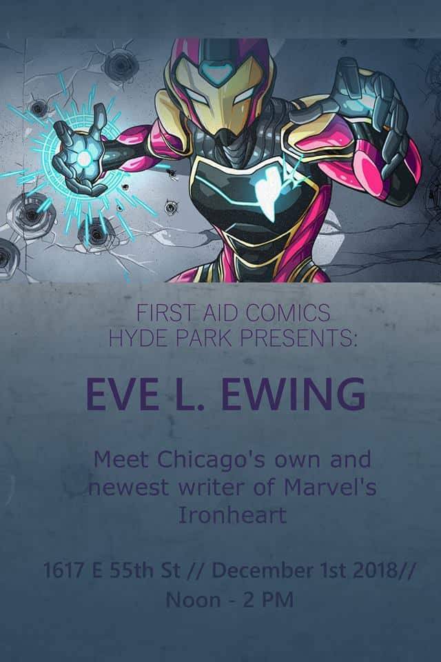 Writer Eve L. Ewing appears at First Aid Comics on Saturday, December 1, 2018 from noon till 2:00 PM to sign the first issue of IRONHEART from Marvel Comics!