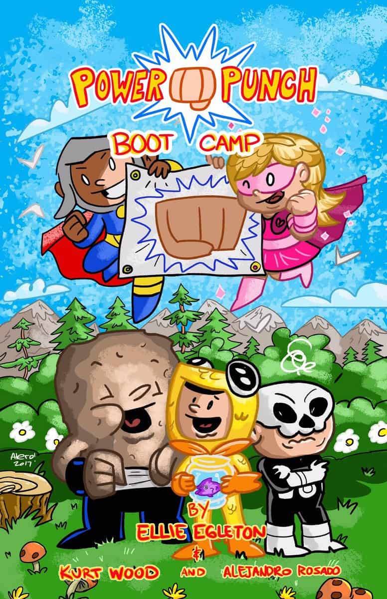 With the goal of WORLD DOMINATION, the terrible wannabe villain Bonester is forced to team-up with the heroic Skylark, the timid Fish Boy Frank and the hopeless romantic Rock King to beat the evil Professor Pain. With a traitor on board, the Bonester is forced to make a decision which leaves his world domination in the balance. How far will a villain go to save his unlikely friends? Power Punch Boot Camp is an 80 page, full-color all-ages graphic novel. Power Punch Boot Camp will make for a great Christmas present for the little superheroes in your life. Guaranteed to promote reading and imagination!