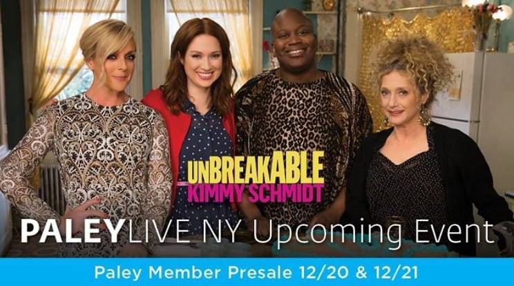 Join the Paley Center on Thursday, January 24, 2019 at 7 PM for an evening celebrating the final episodes of Netflix’s Emmy Award-nominated Unbreakable Kimmy Schmidt. As the series comes to a hilarious and moving close, Kimmy has to choose between helping her friends, Titus (Tituss Burgess), Jacqueline (Jane Krakowski), and Lillian (Carol Kane), and helping someone she’s never put first before: herself. This final season includes a double-sized “Sliding Doors” episode exploring how the main characters’ lives might have been different if Kimmy had never been kidnapped.
