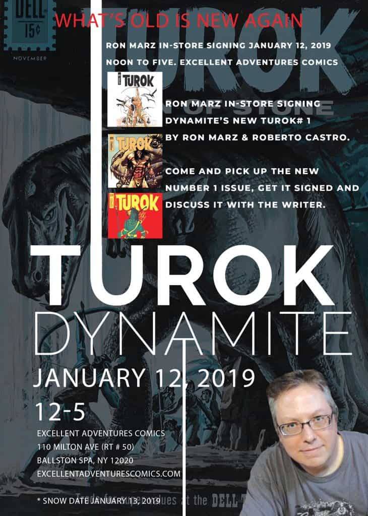Ron Marz, writer of Dread Gods, Harbinger Renegade, Skylanders, Witchblade, Green Lantern, Silver Surfer, and more, appears at Excellent Adventures Comics on Saturday, January 12, 2019 from noon till 5:00 PM to sign TUROK #1 from Dynamite Entertainment.