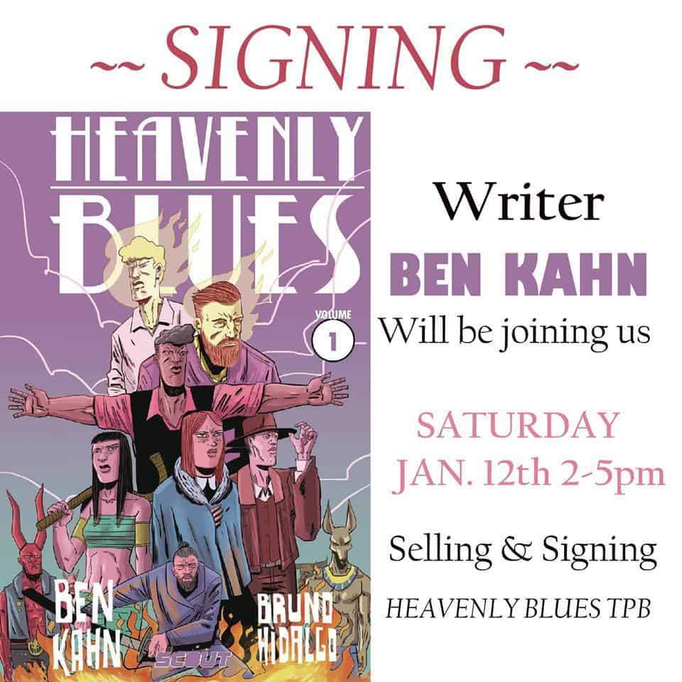 Writer Ben Kahn appears at Royal Collectibles on Saturday, January 12th at 2:00 PM to sign HEAVENLY BLUES from Scout Comics.