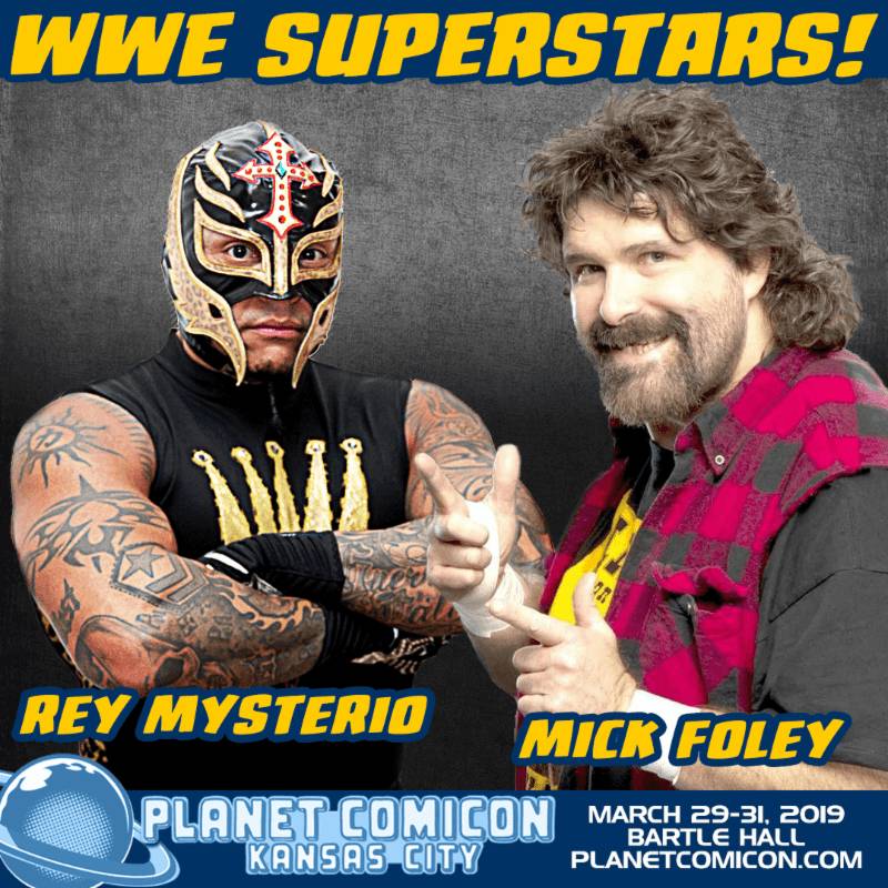 Planet Comicon Kansas City, the largest and longest-running comic book convention and pop culture event in the region, is getting ready to rumble with two huge superstars of the wrestling ring – WWE Hall of Famer Mick Foley and legendary cruiserweight champion Rey Mysterio!