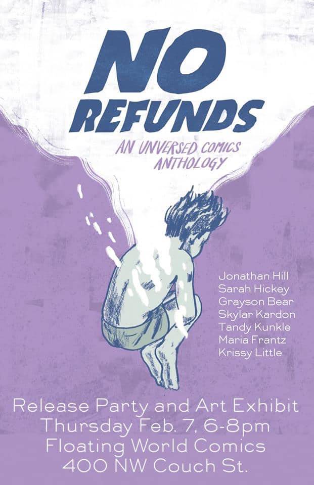 Now in its second year, a new group of artists are working on No Refunds, the newest anthology from Unversed Comics: stories about how you can never return to the way things were. Whether it’s a permanent tattoo, the death of a loved one, or coming home to see that everything you remember has changed, No Refunds is a denial of nostalgia: whatever you do, you can’t go back.