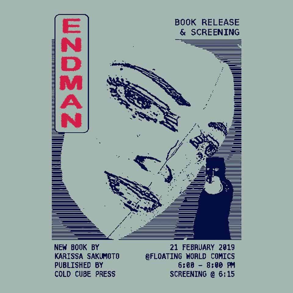 Join local artist Karissa Sakumoto on Thursday, February 21 to celebrate the release of her new book, ENDMAN, risograph printed by Cold Cube Press.