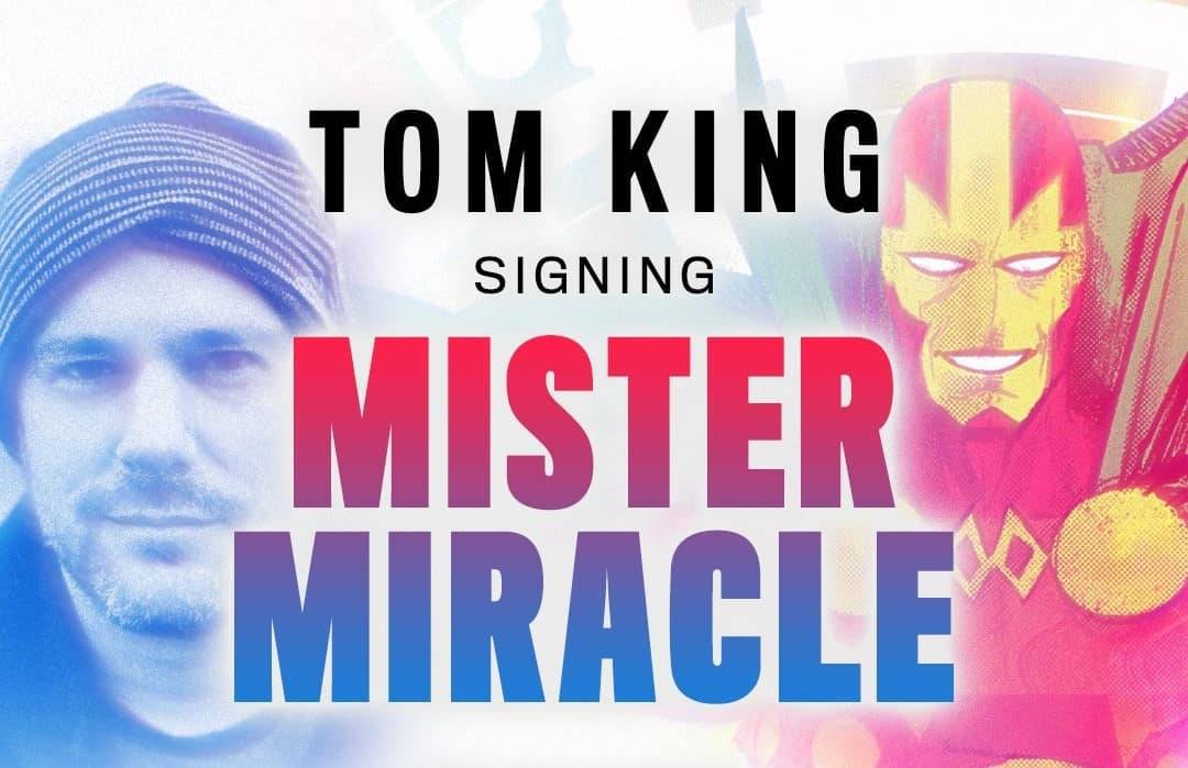 Writer Tom King (Batman, Heroes in Crisis, The Sheriff of Babylon, The Vision) appears at Fantom Comics on Saturday, February 23, 2019 from 1 PM – 3 PM to present and sign the MISTER MIRACLE TPB from DC Comics.