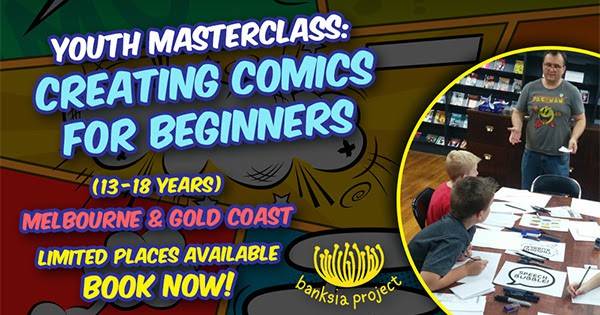 Introducing the all new Banksia Youth Masterclass! Join Supa-Star Alisha Jade with Banksia Project Recipients Alex E. Clark (Melbourne) and Cameron Davis (Gold Coast) for a fantastic workshop, making your own comics and learning the ins and outs of writing, drawing and printing your own comics in Australia, on the Saturday morning of each event! This is the perfect opportunity for younger comic book fans (aged 13 – 18) to develop their skills and gain invaluable insight from industry professionals. Tickets for the Melbourne and Gold Coast Masterclasses are on sale now; these are strictly limited, folks, so get in quick to secure your place!