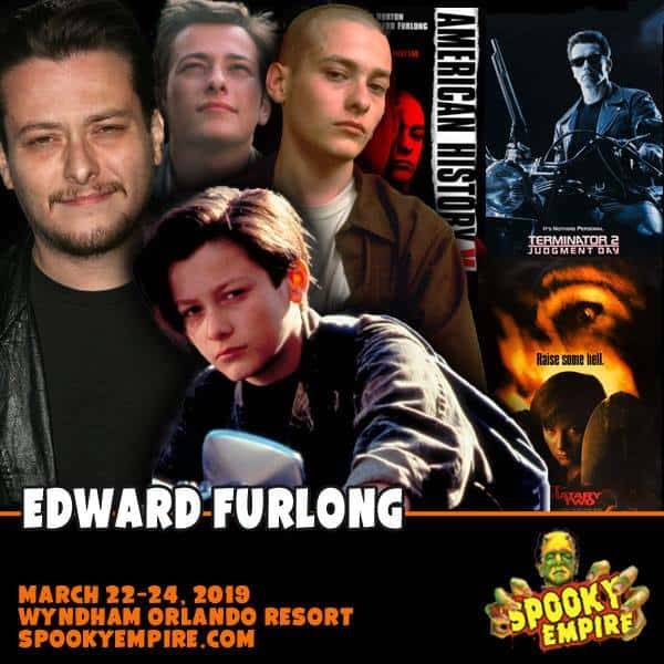 EDWARD FURLONG joins us this March 22-24 in Orlando, FL. As a child actor, Edward Furlong was no stranger to the big screen starting with his first big role as John Connor in “Terminator 2” alongside Arnold Schwarzenegger then on to “Pet Sematary 2”, “A Home of Our Own”, “Pecker” (with Christina Ricci), “American History X” (w/ Fairuza Balk), “Detroit Rock City”, “Cruel World”, “The Crow: Wicked Prayer”, “The Visitation”, “Night of the Demons”, “The Green Hornet”, “The Zombie King” and many more, plus TV series ” Star Trek: Renegades” and “CSI: NY”.